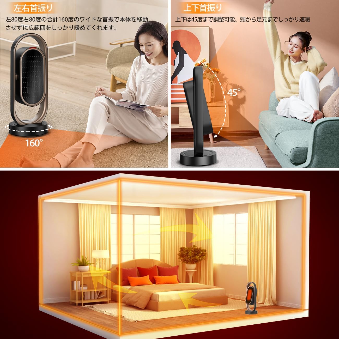 電気ファンヒーター 省エネ ファンヒーター 電気ストーブ リモコン付き