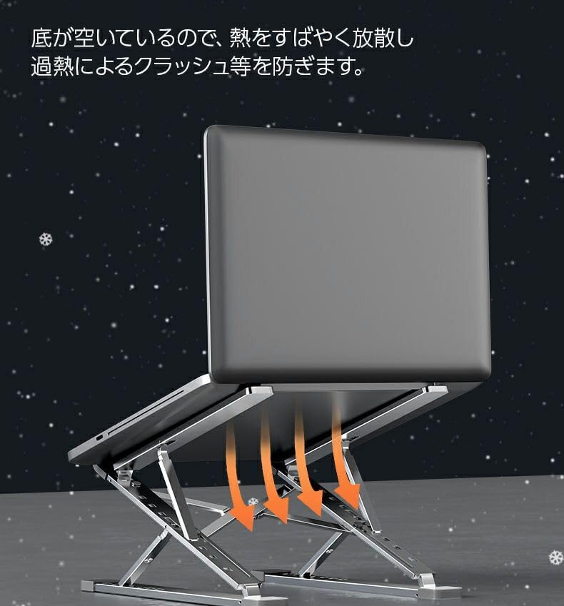 KLS-W02 ブラック 折りたたみ式 ラップトップスタンド 軽量 アルミ製 専用ケース付き