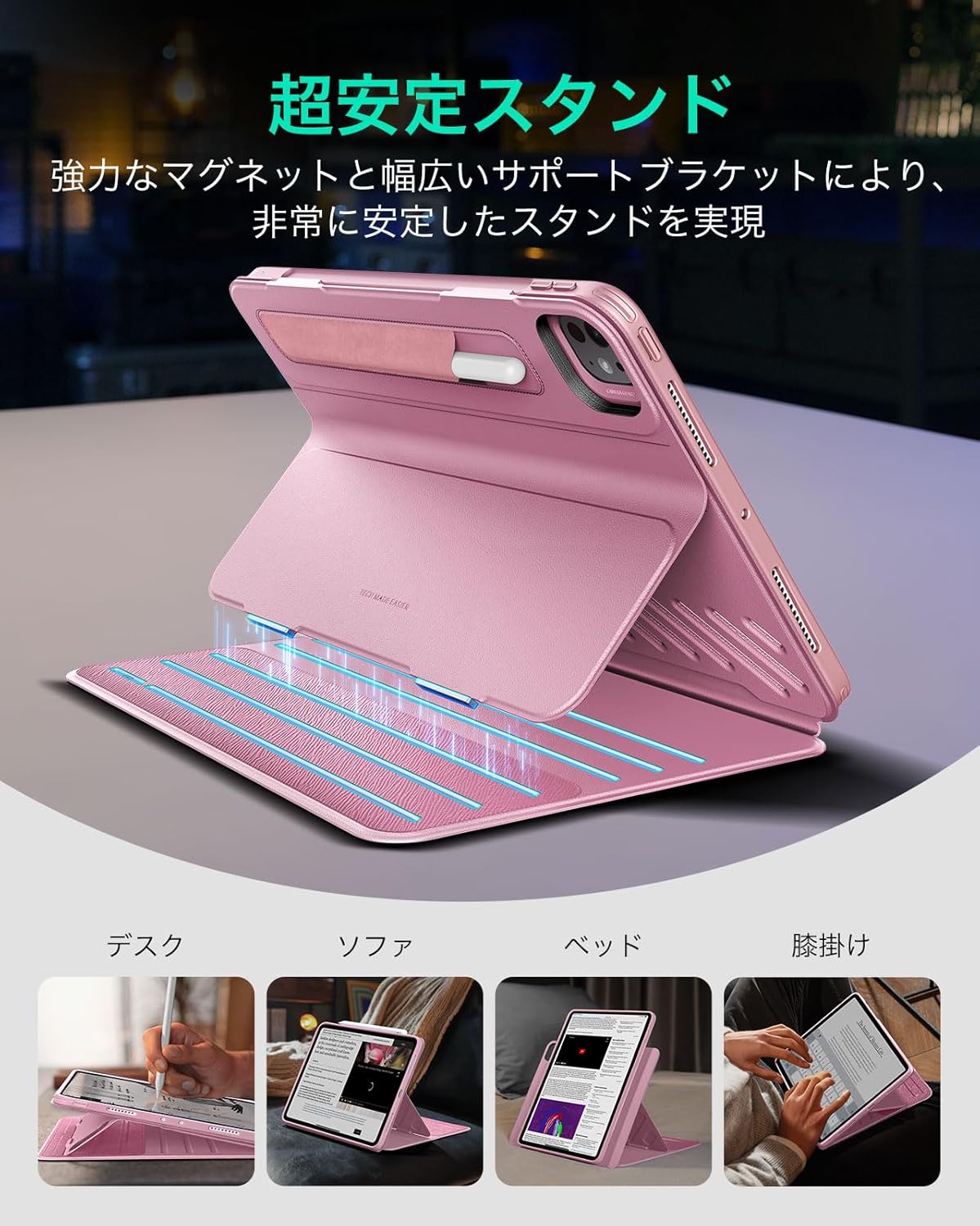 M4 2024専用 取外し可能なマグネットカバー付き回転式ケース 縦向き/横向きスタンド 9段階の角度調節可能