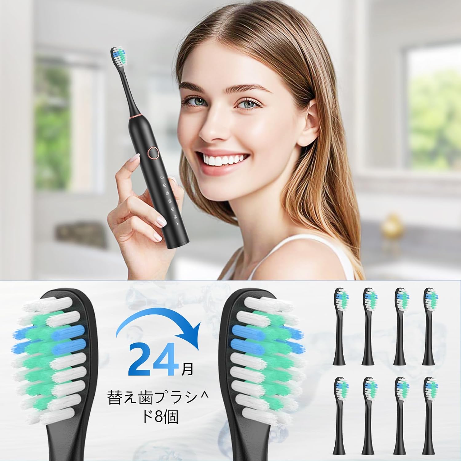 音波歯ブラシ 替えブラシ8本付 USB充電 収納ケース付き 2分間オートタイマー機能