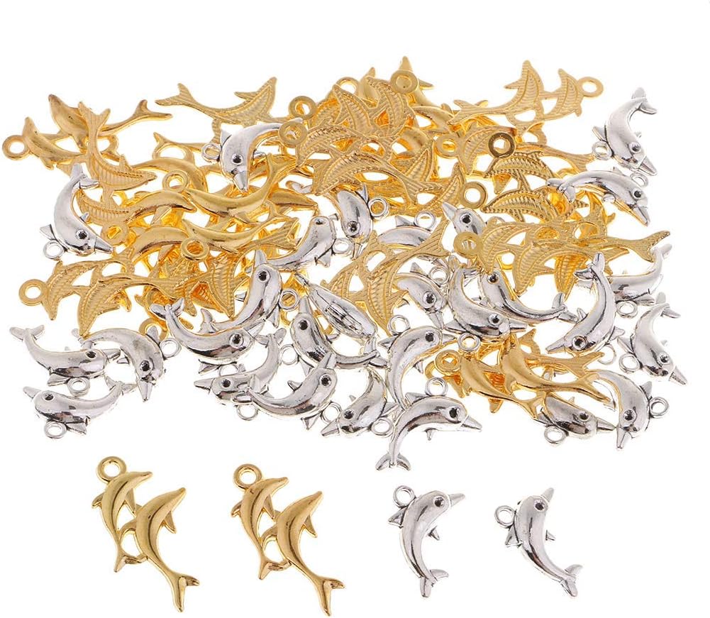 60ピースゴールドシルバーイルカペンダントアクセサリー